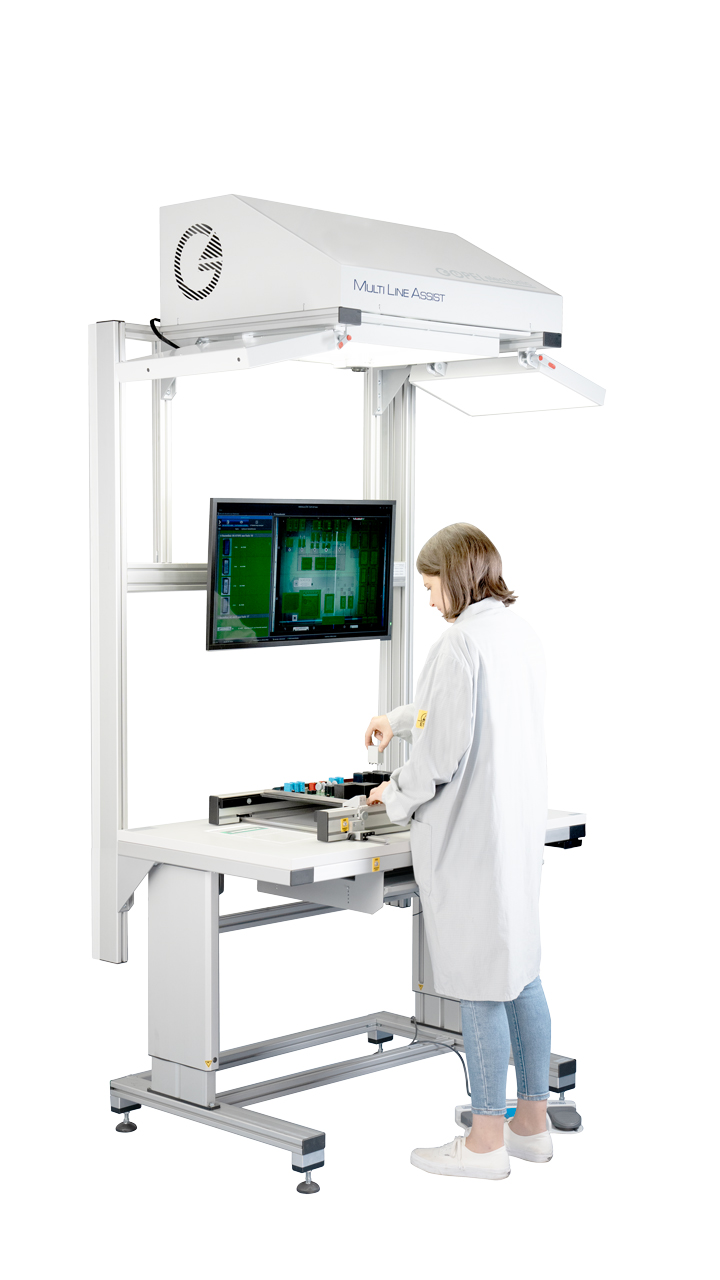 A Multi Line Assist egyaránt alkalmazható kézi THT szerelőállomásokon és automatizált gyártósorokon. A rendszer a szerelési utasításokat közvetlenül a kezelő látómezejébe vetíti, így jelentősen csökkenti a szerelési időt. Az integrált AOI modul minden lépés után vagy a szerelési folyamat végén ellenőrzi az alkatrészek beültetését, és megbízhatóan felismeri a hibákat, például a helytelen polaritást, hiányzó alkatrészeket, vagy a szín- és feliratozási eltéréseket. Minden eredmény dokumentálásra kerül, statisztikailag kiértékelhető, és továbbítható MES rendszerekhez.