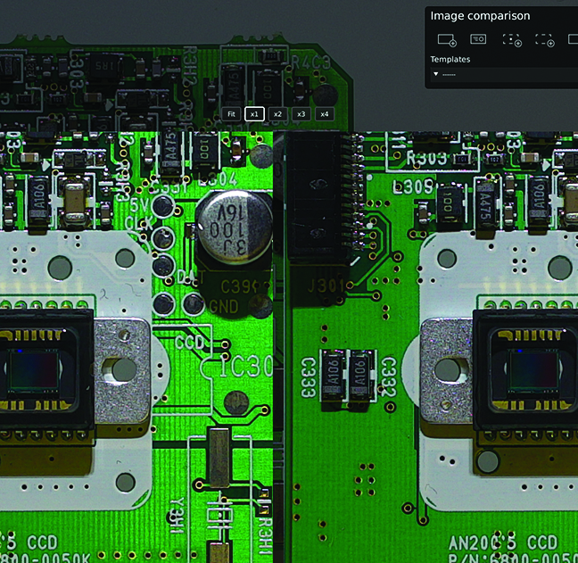 Az alkalmazás ragyogóan működik az áramköri lapok minőség ellenőrzésében miután a beültető gép elhelyezte az alkatrészeket. Az alkalmazás lehetővé teszi, hogy a nyomtatott áramköri mintákat különböző módon hasonlítsa össze a minták referenciaképeivel. Az alábbiakban leírjuk az alkalmazás különféle funkcióit.
